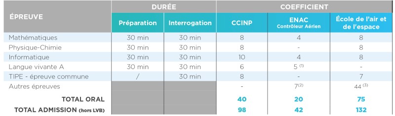 Les "Grands Admissibles" sont dispensés de passer les épreuves orales, y compris celle des travaux d’initiative personnelle encadrés (TIPE) . Cela concerne uniquement les écoles du concours CCINP. Attention, le statut de "Grand Admissible du CCINP" ne concerne pas les écoles en banque d'épreuves du CCINP. Ces candidats devront donc présenter toutes les épreuves orales les concernant y compris celles qui utilisent les épreuves du CCINP et le TIPE. (voir partie VIII de la notice - organisation spécifique à chaque concours)