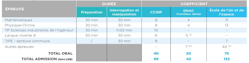 - La forme des épreuves orales de MATHÉMATIQUES et PHYSIQUE - CHIMIE est identique à celle de la filière MP, soit la résolution de deux exercices.